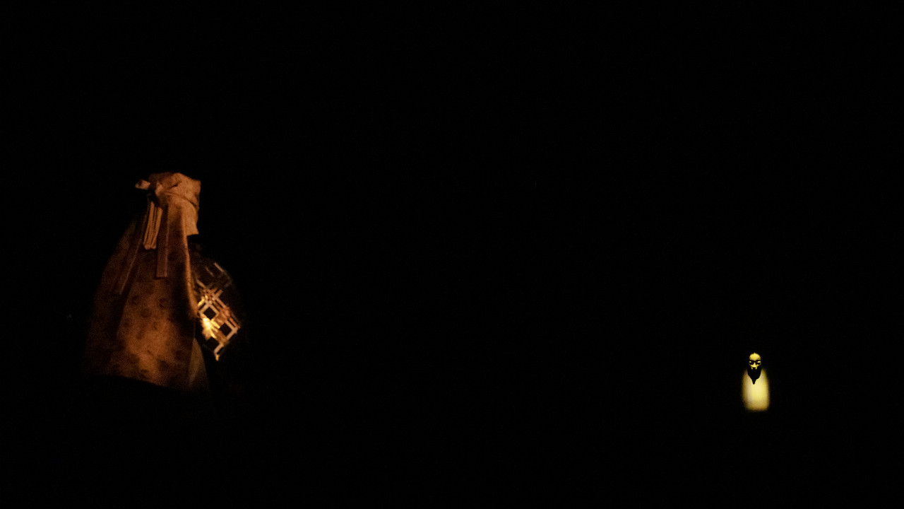 今回の演目である『攻殻機動隊』のテーマの一つである、記憶や知覚の不確かさ・曖昧さを、やはり「夢幻」を要とする能の伝統に重ね、舞台上の人物の誰が確かな存在なのか分からない、虚実の境目を曖昧にした舞台を実現した。我々はこれまで能舞台に立体映像を投影する『3D能』を手掛けてきたが、本技術により舞台上に情報を追加するのではなく、舞台上から情報を削減する手法を確立した。
